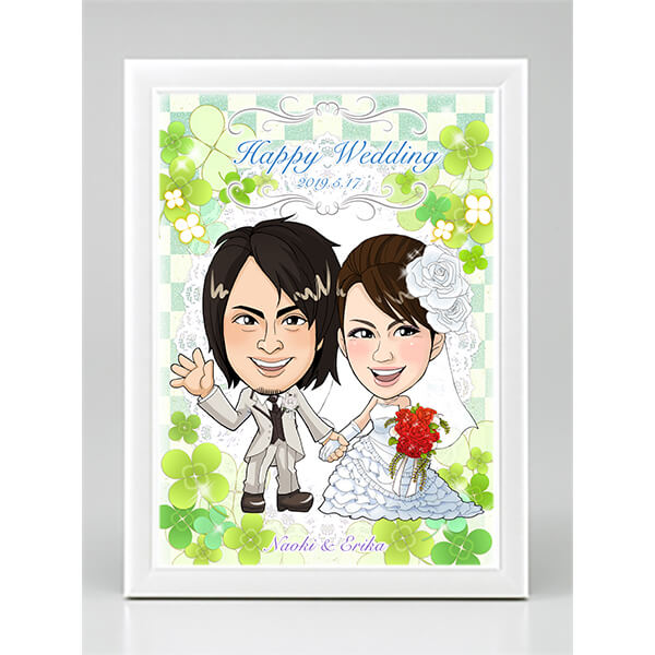 CG似顔絵ウェルカムボード2ndクローバー(縦)|ウェルカムボードならPIARY(ピアリー)