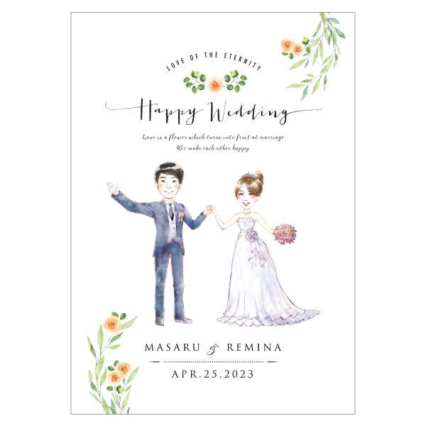 CG似顔絵ウォーターカラーウェルカムボード ナチュラル|ウェルカムボードならPIARY(ピアリー)