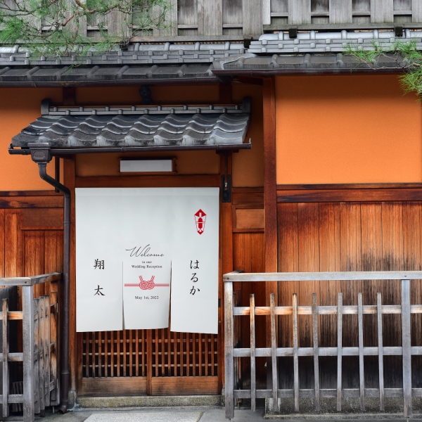 ウェルカムスペース、受付、前撮り小物と大活躍♪ ウェルカムのれんで、一味違う結婚式にしませんか。