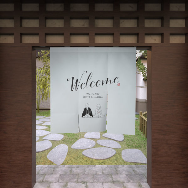 ウェルカムスペース、受付、前撮り小物と大活躍♪ ウェルカムのれんで、一味違う結婚式にしませんか。