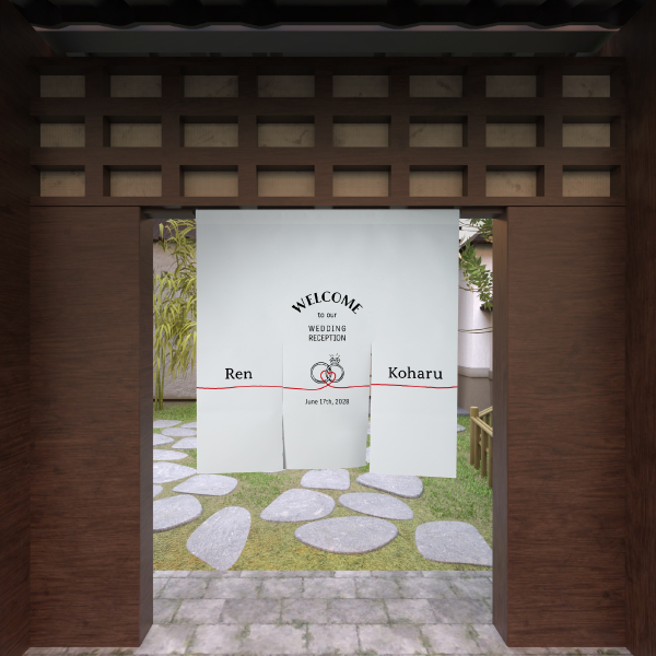 ウェルカムスペース、受付、前撮り小物と大活躍♪ ウェルカムのれんで、一味違う結婚式にしませんか。