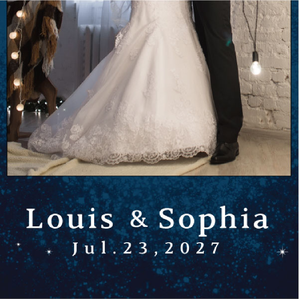 月と星がテーマの結婚式にしたくて、 ナイトウェディングにぴったりのウェルカムボードなので選びました パソコンが苦手なのでDIYはしたくなかったのですが 写真も入れられてオリジナリティが出せて良かったです。