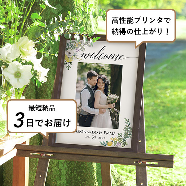 結婚式のウェルカムスペース用に購入しました。 前撮り写真が届いたのが本番の約1ヶ月前で急いで購入したのですが、到着までもスピーディーで余裕で間に合いました。 むしろこんなに早く届くなら、他のものと一緒に頼めば送料無料になるのでまとめて発注でも良かったです(笑) 文字の場所や大きさは全く変えられないのでデザインにあわせて写真を選ぶ必要があるのが少し残念です。 多少でも文字の場所をずらせたら、本当に使いたい写真を使えたのに. . . . オプションでA3サイズのボードを980円で追加できるのもかなりお得です。 総じてかなりお安くウェルカムボードを購入できました!