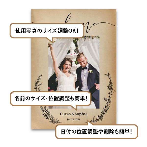 | 無料特典 | 受付サイン1組(新郎用×1組、新婦用×1組) |