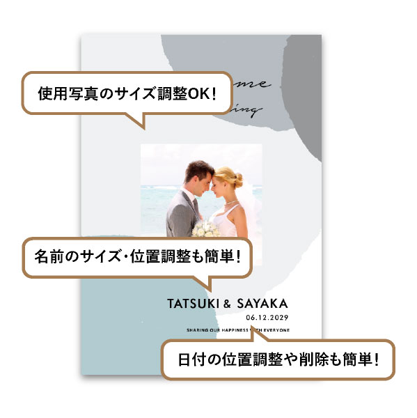 | 無料特典 | 受付サイン1組(新郎用×1組、新婦用×1組) |