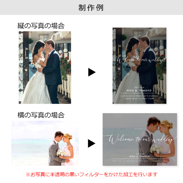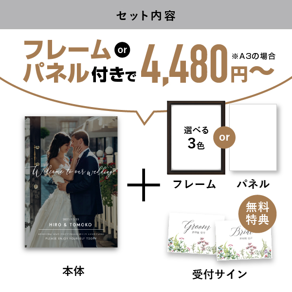| 無料特典 | 受付サイン1組(新郎用×1組、新婦用×1組) |