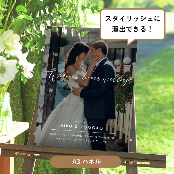 | 内容物 | フォトウェルカムボード ■スタイリッシュボード(厚さ7mmのボードに、フチを裁断したスタイリッシュな仕上がりです。) ■フレーム付き(A3サイズは3種類よりお選びいただけます。A2サイズは2種類よりお選びいただけます。) |