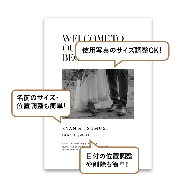 | 無料特典 | 受付サイン1組(新郎用×1組、新婦用×1組) |