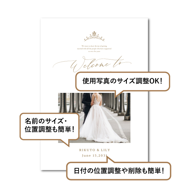 | 無料特典 | 受付サイン1組(新郎用×1組、新婦用×1組) |