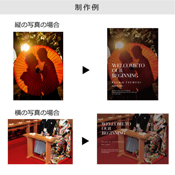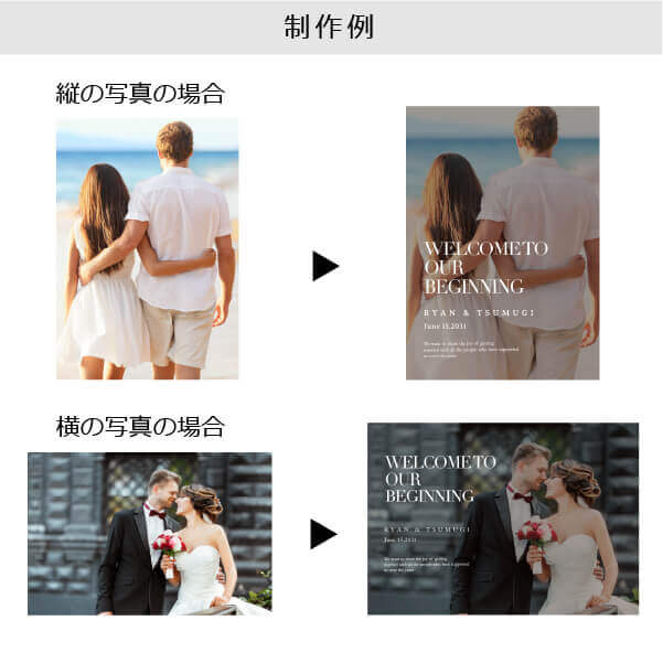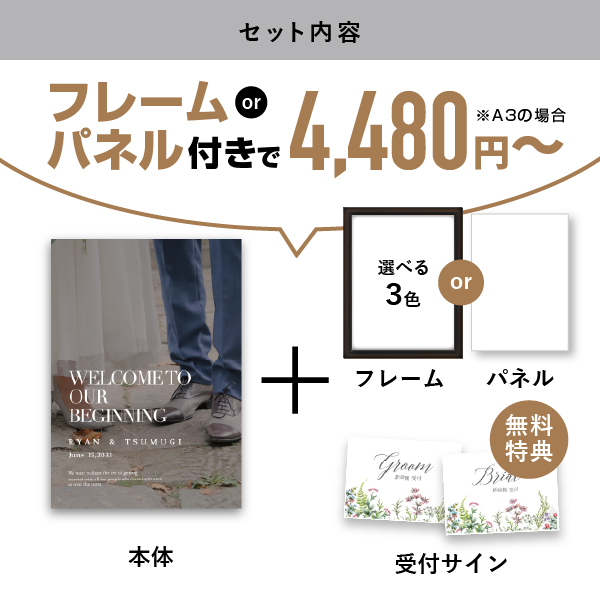 | 無料特典 | 受付サイン1組(新郎用×1組、新婦用×1組) |