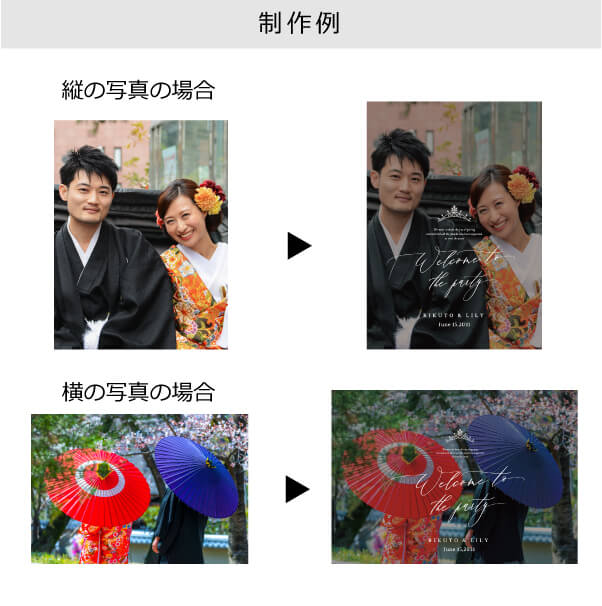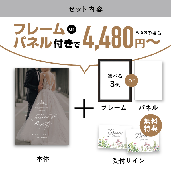 | 無料特典 | 受付サイン1組(新郎用×1組、新婦用×1組) |