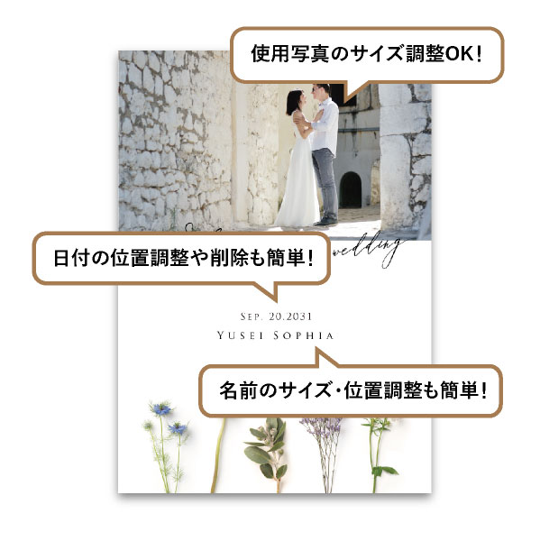 | 無料特典 | 受付サイン1組(新郎用×1組、新婦用×1組) |