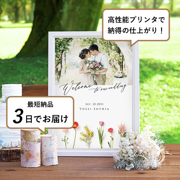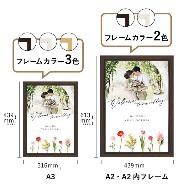 | 内容物 | フォトウェルカムボード ■フレーム付き(A3サイズは3種類よりお選びいただけます。A2サイズは2種類よりお選びいただけます。) |