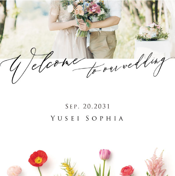 | 無料特典 | 受付サイン1組(新郎用×1組、新婦用×1組) |