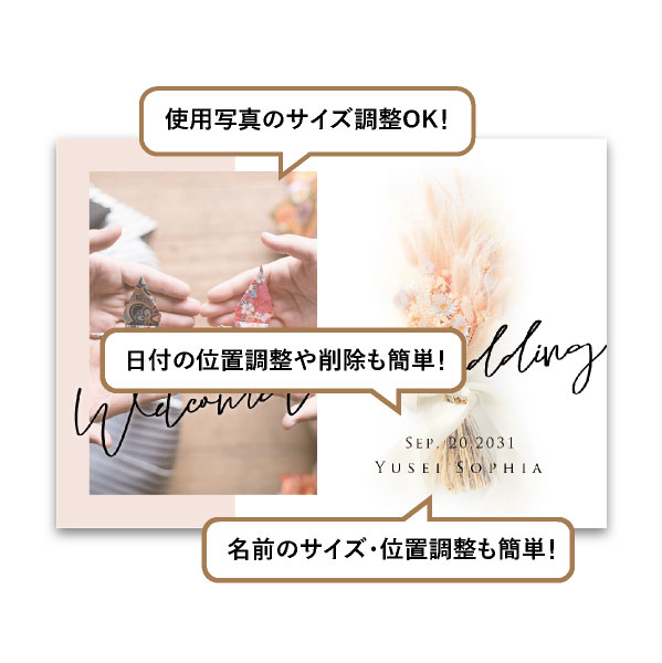 | 無料特典 | 受付サイン1組(新郎用×1組、新婦用×1組) |