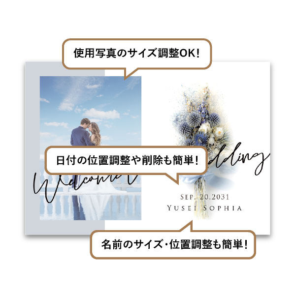 | 無料特典 | 受付サイン1組(新郎用×1組、新婦用×1組) |