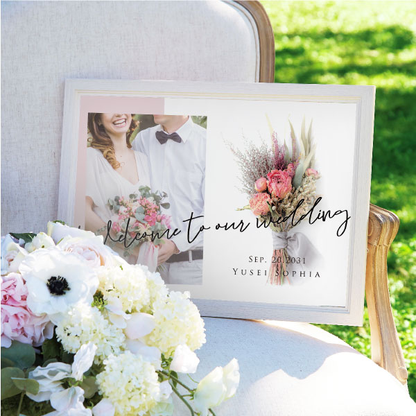 写真が入るウェルカムボードは、おふたりの代わりにゲストをお出迎えするアイテムとしてウェルカムスペースの定番アイテム。PIARYのフォトウェルカムボードはデザインも豊富で、自分で写真調整ができるウェルカムボードとして大人気です。