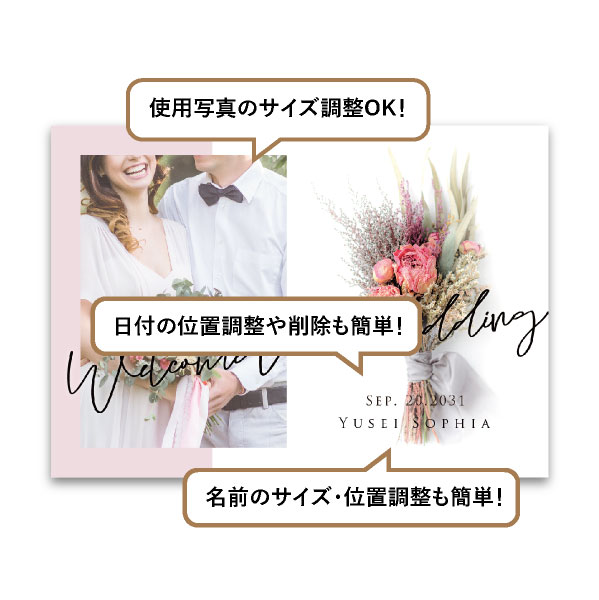| 無料特典 | 受付サイン1組(新郎用×1組、新婦用×1組) |