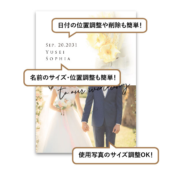 | 無料特典 | 受付サイン1組(新郎用×1組、新婦用×1組) |