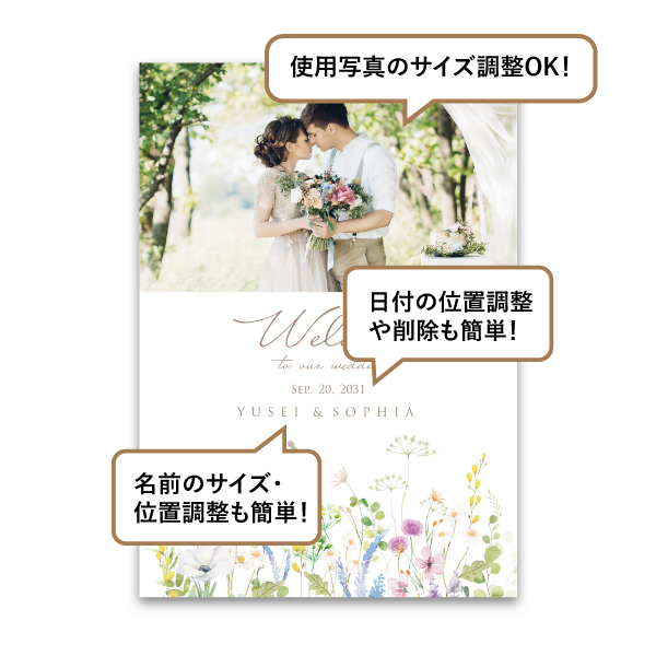 | 無料特典 | 受付サイン1組(新郎用×1組、新婦用×1組) |