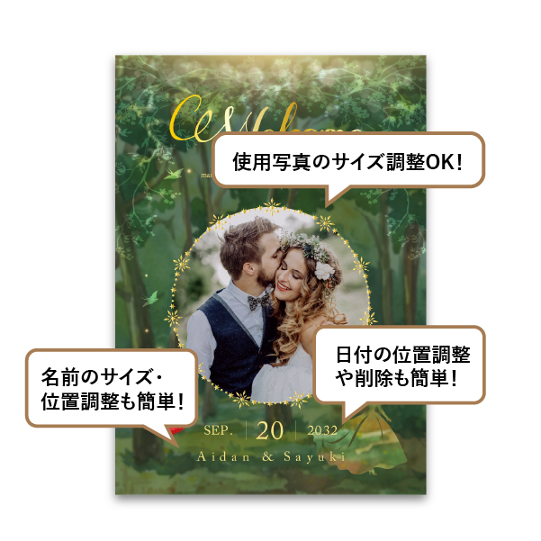 | 無料特典 | 受付サイン1組(新郎用×1組、新婦用×1組) |