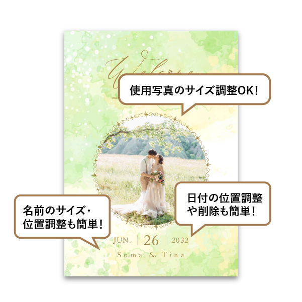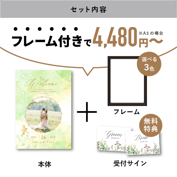| 無料特典 | 受付サイン1組(新郎用×1組、新婦用×1組) |