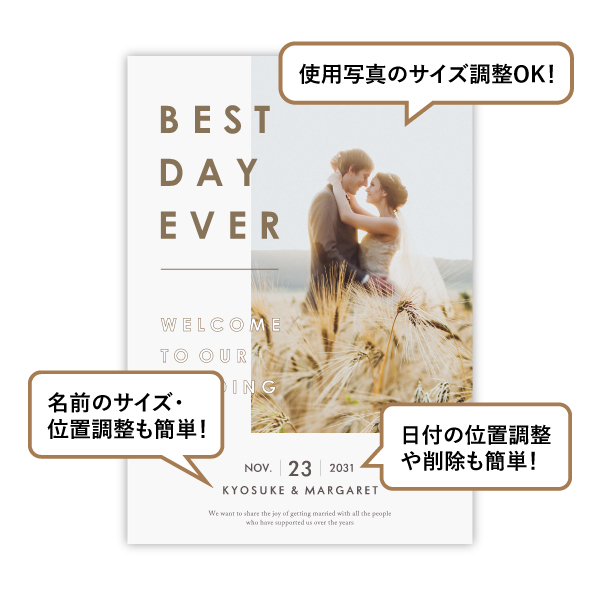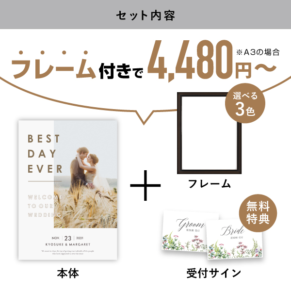 | 無料特典 | 受付サイン 新郎用×1、新婦用×1 |