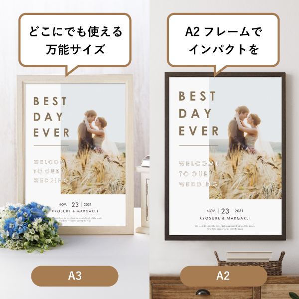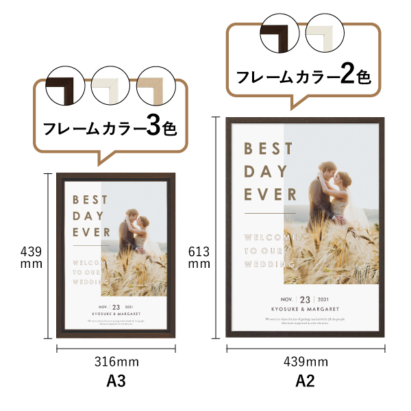| 内容物 | 本体×1個 ■フレーム付き(A3サイズは3種類よりお選びいただけます。A2サイズは2種類よりお選びいただけます。) |