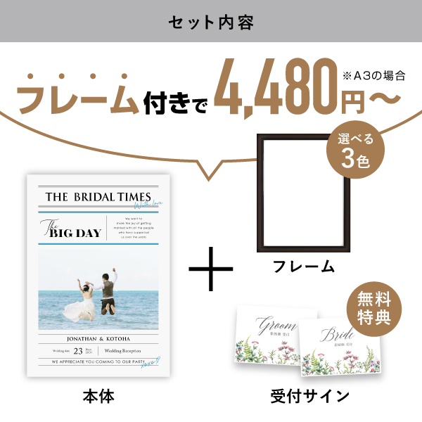 | 無料特典 | 受付サイン 新郎用×1、新婦用×1 |