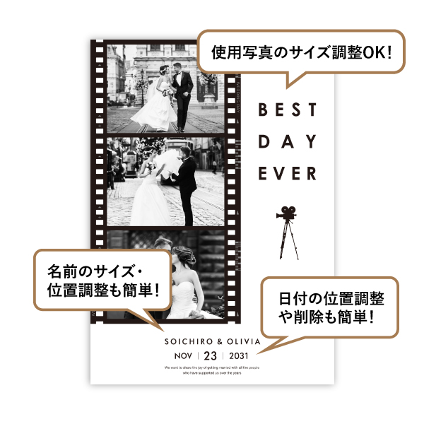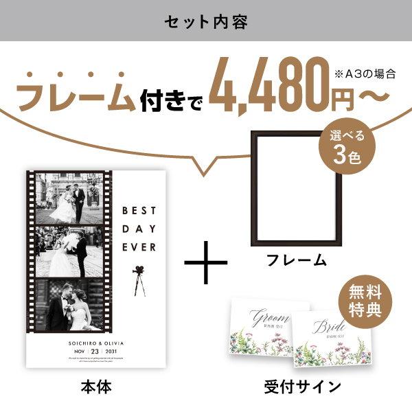 | 無料特典 | 受付サイン1組(新郎用×1組、新婦用×1組) |