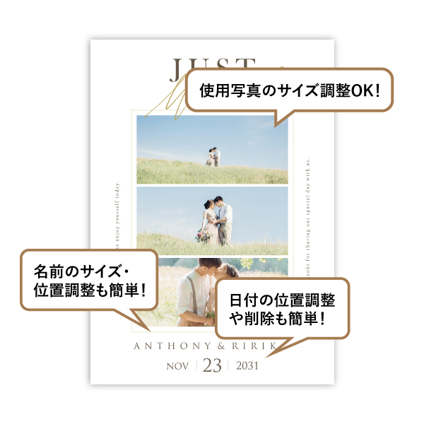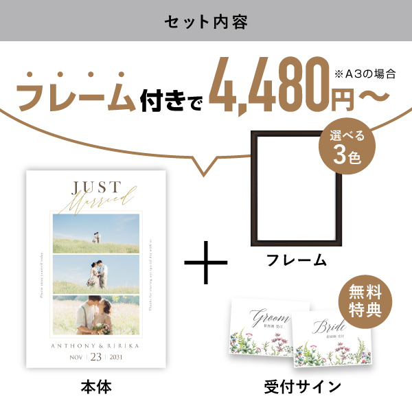 | 無料特典 | 受付サイン1組(新郎用×1組、新婦用×1組) |