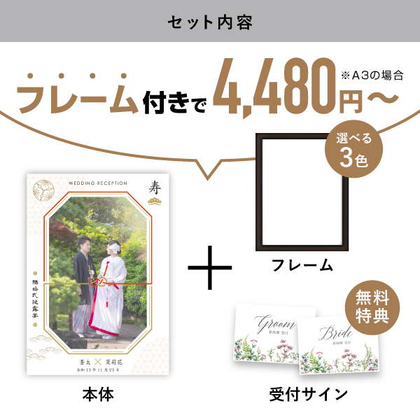 | 無料特典 | 受付サイン1組(新郎用×1組、新婦用×1組) |