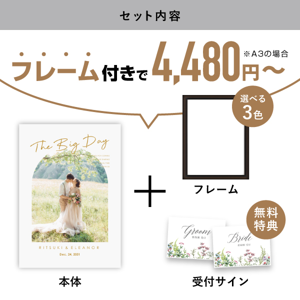 | 無料特典 | 受付サイン1組(新郎用×1組、新婦用×1組) |