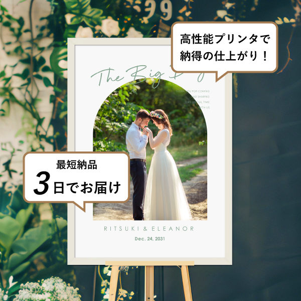 | 無料特典 | 受付サイン1組(新郎用×1組、新婦用×1組) |