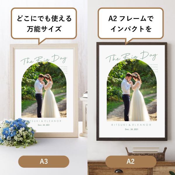 | 内容物 | 本体×1個 ■フレーム付き(A3サイズは3種類よりお選びいただけます。A2サイズは2種類よりお選びいただけます。) |