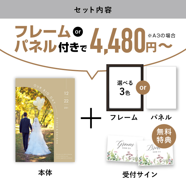 | 無料特典 | 受付サイン1組(新郎用×1組、新婦用×1組) |