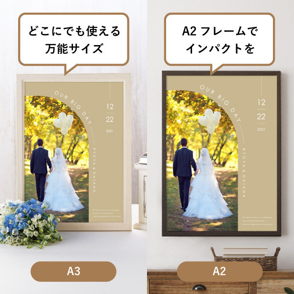| 内容物 | 本体×1個 ■スタイリッシュボード(厚さ7mmのボードに、フチを裁断したスタイリッシュな仕上がりです。) ■フレーム付き(A3サイズは3種類よりお選びいただけます。A2サイズは2種類よりお選びいただけます。) |