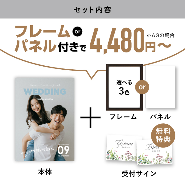 | 無料特典 | 受付サイン1組(新郎用×1組、新婦用×1組) |