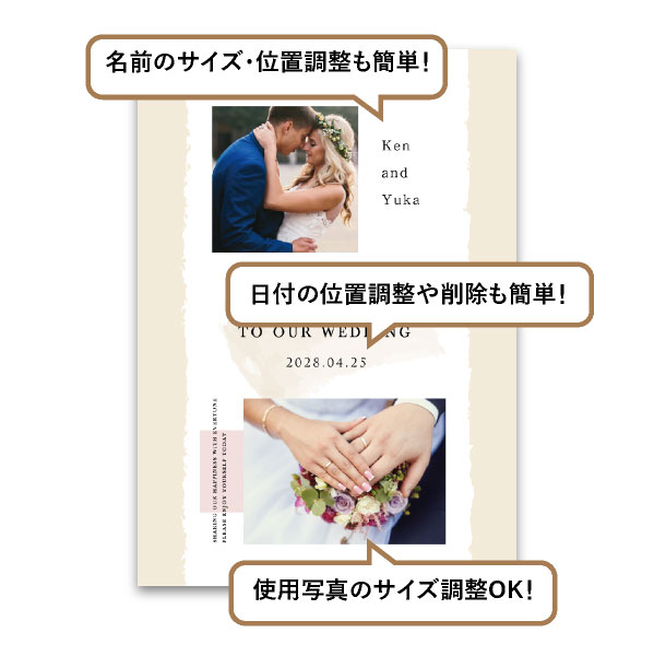 | 無料特典 | 受付サイン1組(新郎用×1組、新婦用×1組) |