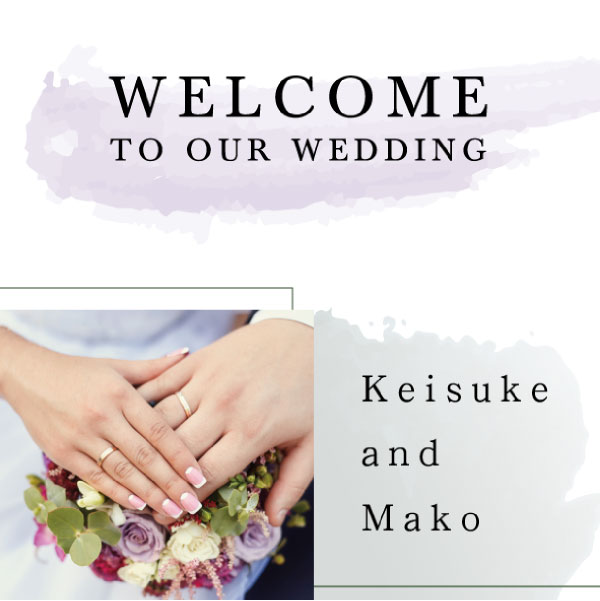 淡く水彩インクをあしらったカジュアルで、爽やかに漂うリラックスウェディングを演出。柔らかな色調が心地よく、クールで大人な印象を感じるデザイン。おふたりらしい雰囲気のウェルカムボードにゲストの方も笑顔があふれるはず。すっきりとシンプルなデザインなのでどんなウェルカムスペースにも合います◎