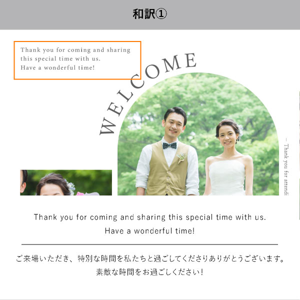 | 無料特典 | 受付サイン1組(新郎用×1組、新婦用×1組) |