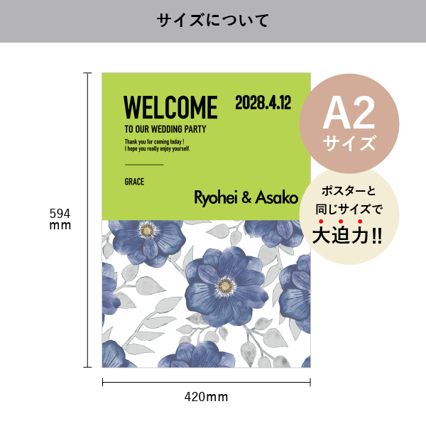 フラットなフォルムにデザインが大きく入るA2サイズのパネルは、ゲストをお出迎えするウェルカムボードとしてピッタリです!