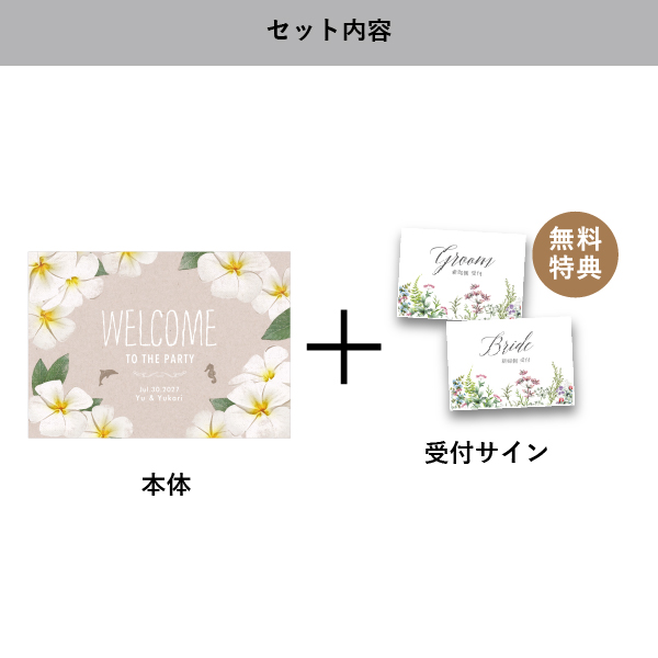 | 無料特典 | 受付サイン1組(新郎用×1組、新婦用×1組) |