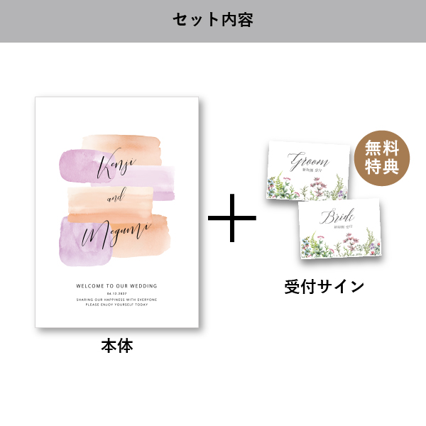 | 無料特典 | 受付サイン1組(新郎用×1組、新婦用×1組) |