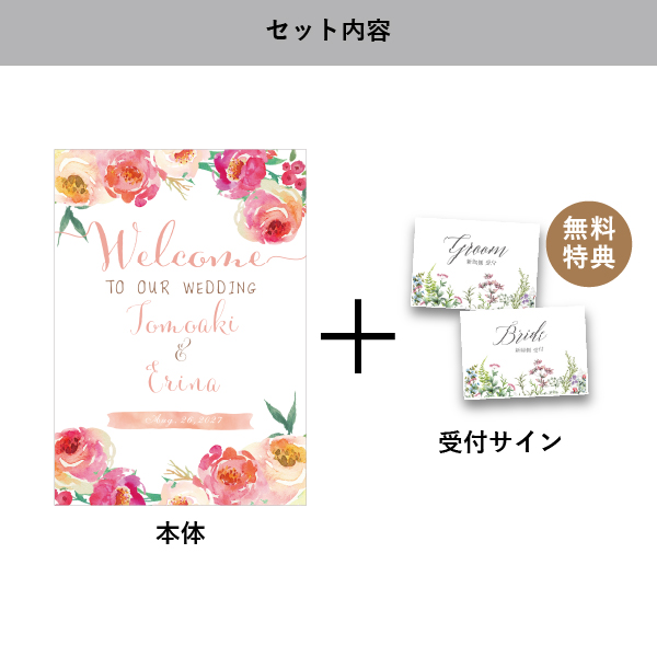 | 無料特典 | 受付サイン1組(新郎用×1組、新婦用×1組) |