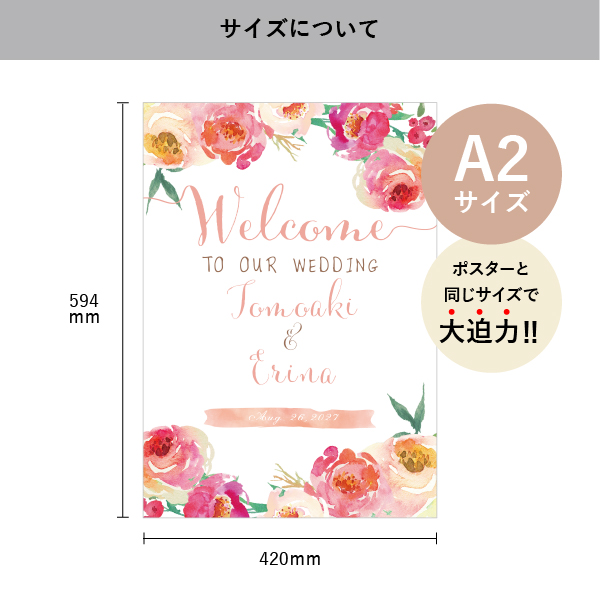 フラットなフォルムにデザインが大きく入るA2サイズのパネルは、ゲストをお出迎えするウェルカムボードとしてピッタリです!