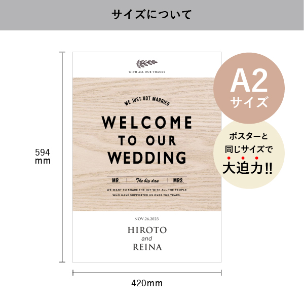 フラットなフォルムにデザインが大きく入るA2サイズのパネルは、ゲストをお出迎えするウェルカムボードとしてピッタリです!