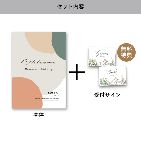 | 無料特典 | 受付サイン1組(新郎用×1組、新婦用×1組) |