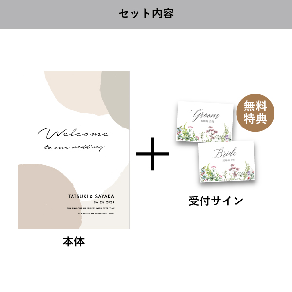| 無料特典 | 受付サイン1組(新郎用×1組、新婦用×1組) |