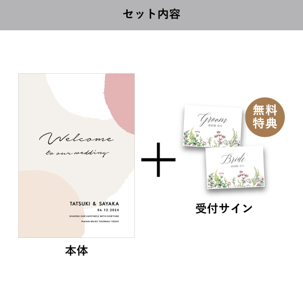 | 無料特典 | 受付サイン1組(新郎用×1組、新婦用×1組) |